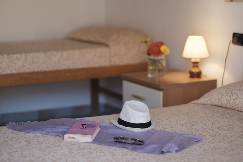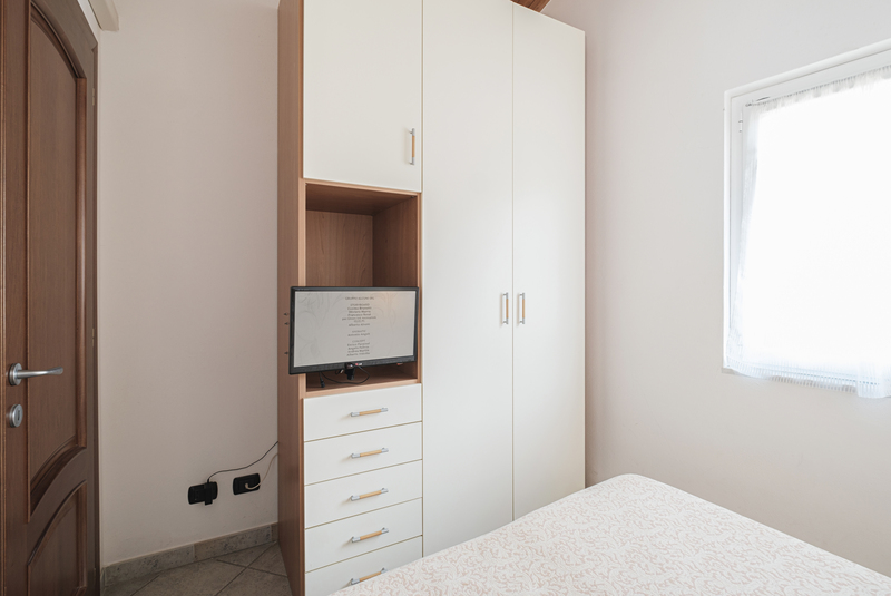 The apartment Bouganville is located on the second floor of the building with its shades of sea, all played between the blue and white. It has a kitchen, livingroom, bathroom and two bedrooms, one with doublebed and the other one with double bed and a single bed. The kitchen is fully equipped with a fridge, freezer, oven, 4 burners and a dishwasher.